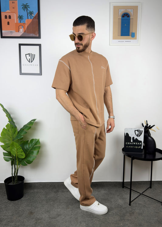 Pantalon et T-shirt Oversize en coton lourd 320 GSM Motif Bandes découpe couture
