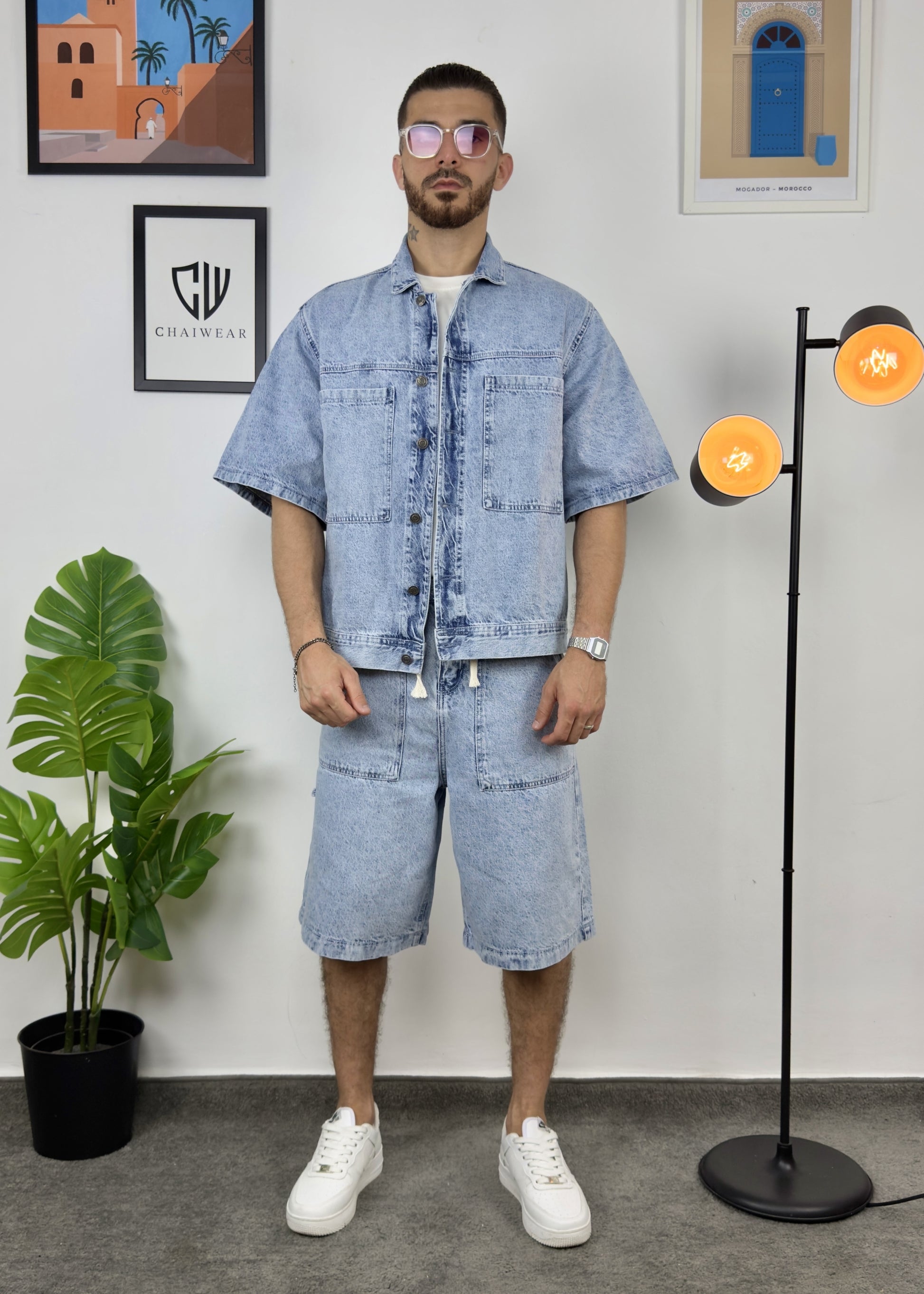 Short et Veste en Jeans oversize en coton lourd 12 Oz