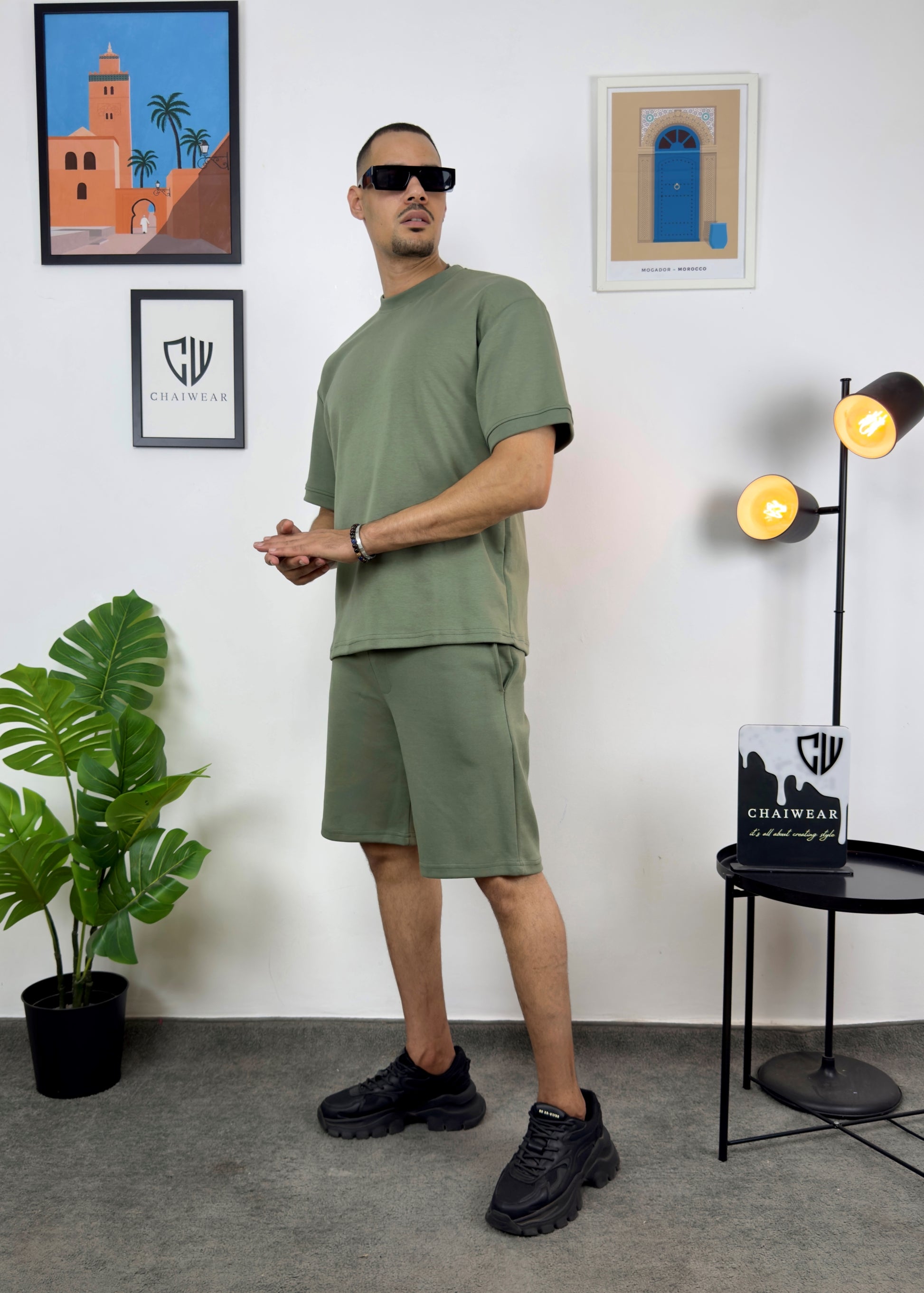 Short et T-shirt simple oversize en coton lourd 320 GSM